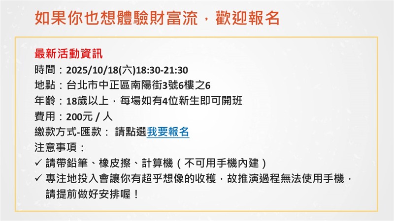 ⚠️匯款記得點擊下方【我要報名】,並在「備註」欄位告訴我們您匯款的後五碼喔!